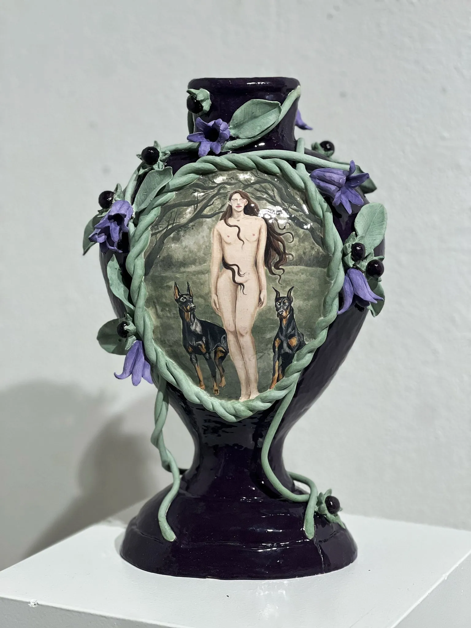 Nonna Hoogland fuses elements of kitsch, contemporary culture and Renaissance composition to create sculptures and paintings that place the female identity at their centre. Her works are at once playful and vulnerable, negotiating the complexity of human emotions through an interplay of intimacy, humour, poetry and cynicism.