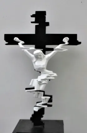 His glitched reinterpretations of traditional religious symbols, such as Jesus Christ on the crucifix, bring the cyber and digital space into the manifest world, marrying it with religious signifiers. As a result, Haakman’s works agitate conventional associations within the viewers and inspire them to reconsider the role of such symbols in the world today.